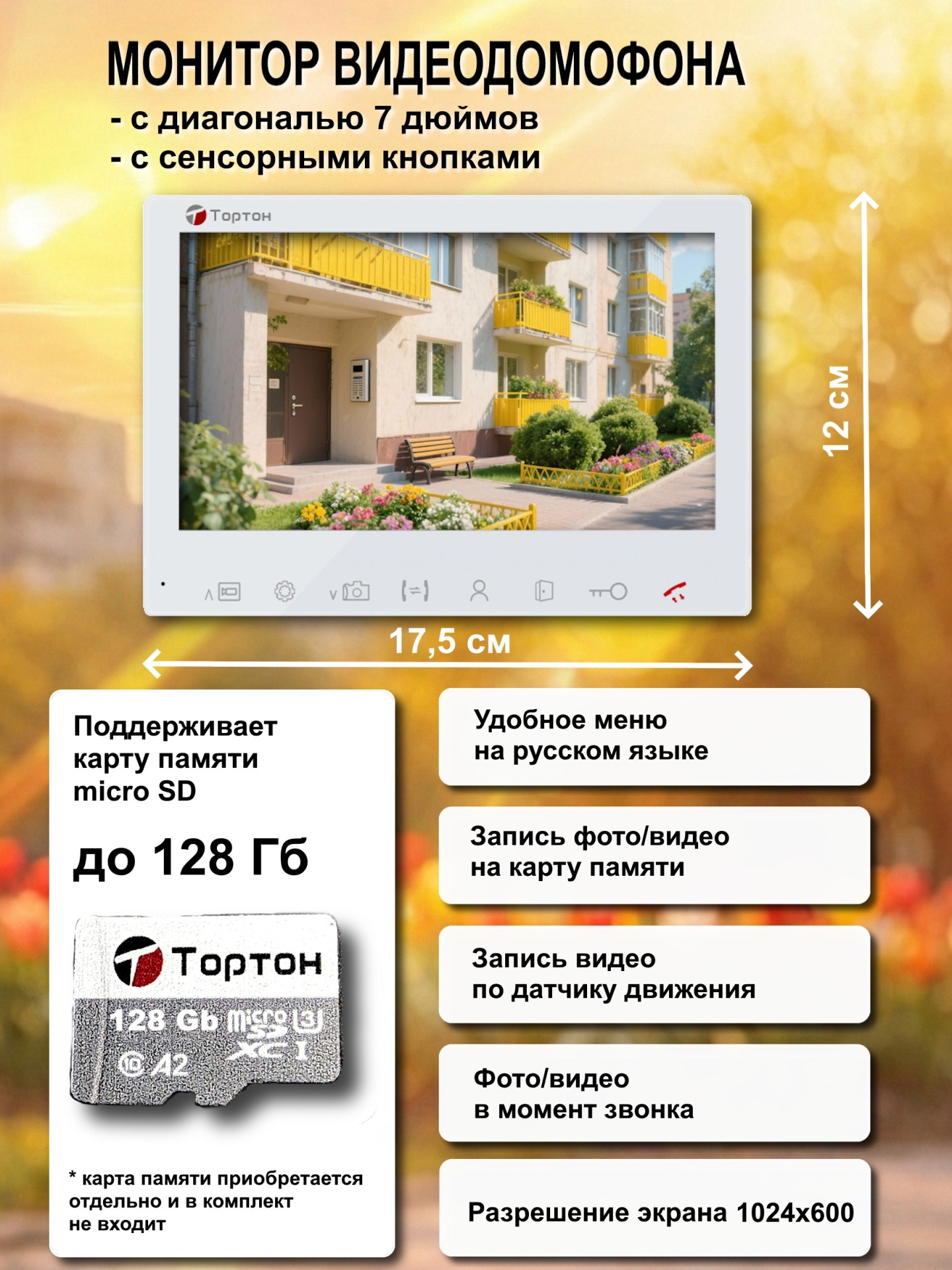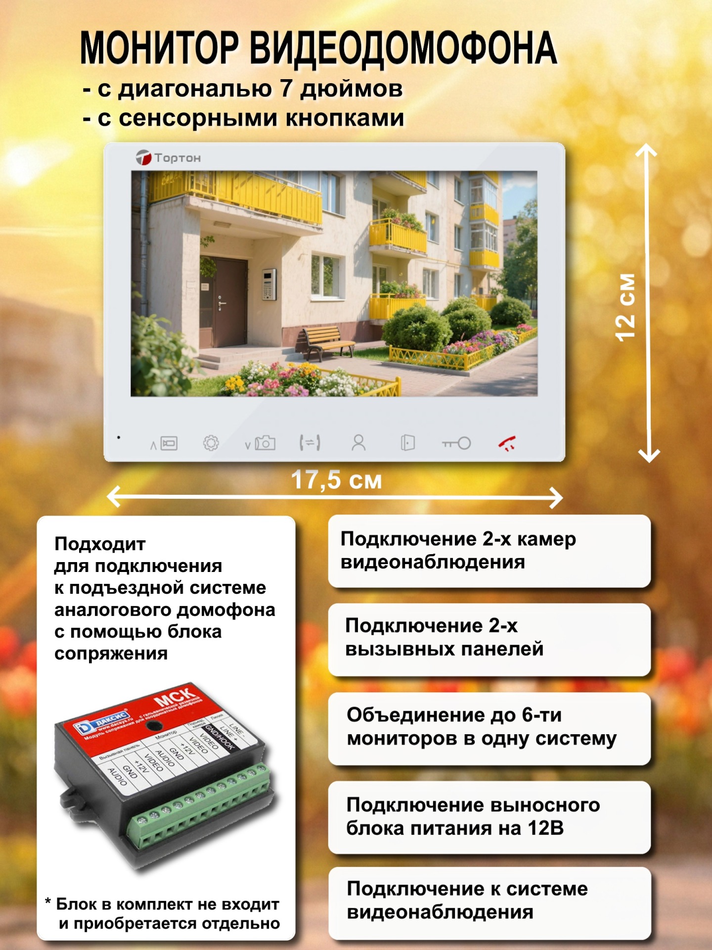 Комплект видеодомофона для дома Тортон TN-MD720 W - это современное решение для обеспечения безопасности и комфорта вашего жилища. Этот комплект видеодомофона для дома с замком позволит вам всегда знать, кто находится у вашей калитки, и открывать ее дистанционно. Видеодомофон для частного дома Тортон TN-MD720 W оснащен качественной камерой, которая обеспечивает четкое изображение, а встроенный микрофон и динамик позволяют общаться с посетителями. Благодаря электромеханическому замку, входящему в комплект видеодомофона, вы можете открывать калитку прямо с экрана монитора, не выходя из дома. Видеодомофон для дома Тортон TN-MD720 W - это надежный и удобный способ повысить безопасность вашего дома и контролировать доступ на вашу территорию. Он станет незаменимым помощником для любого частного дома, обеспечивая спокойствие и уверенность своим владельцам.